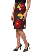Brown Floral High Waist Side Slit Skirt