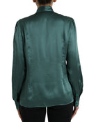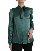 Dark Green Silk Ascot Collar Blouse Top
