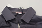 Gray Printed Long Sleeves Collared Top