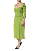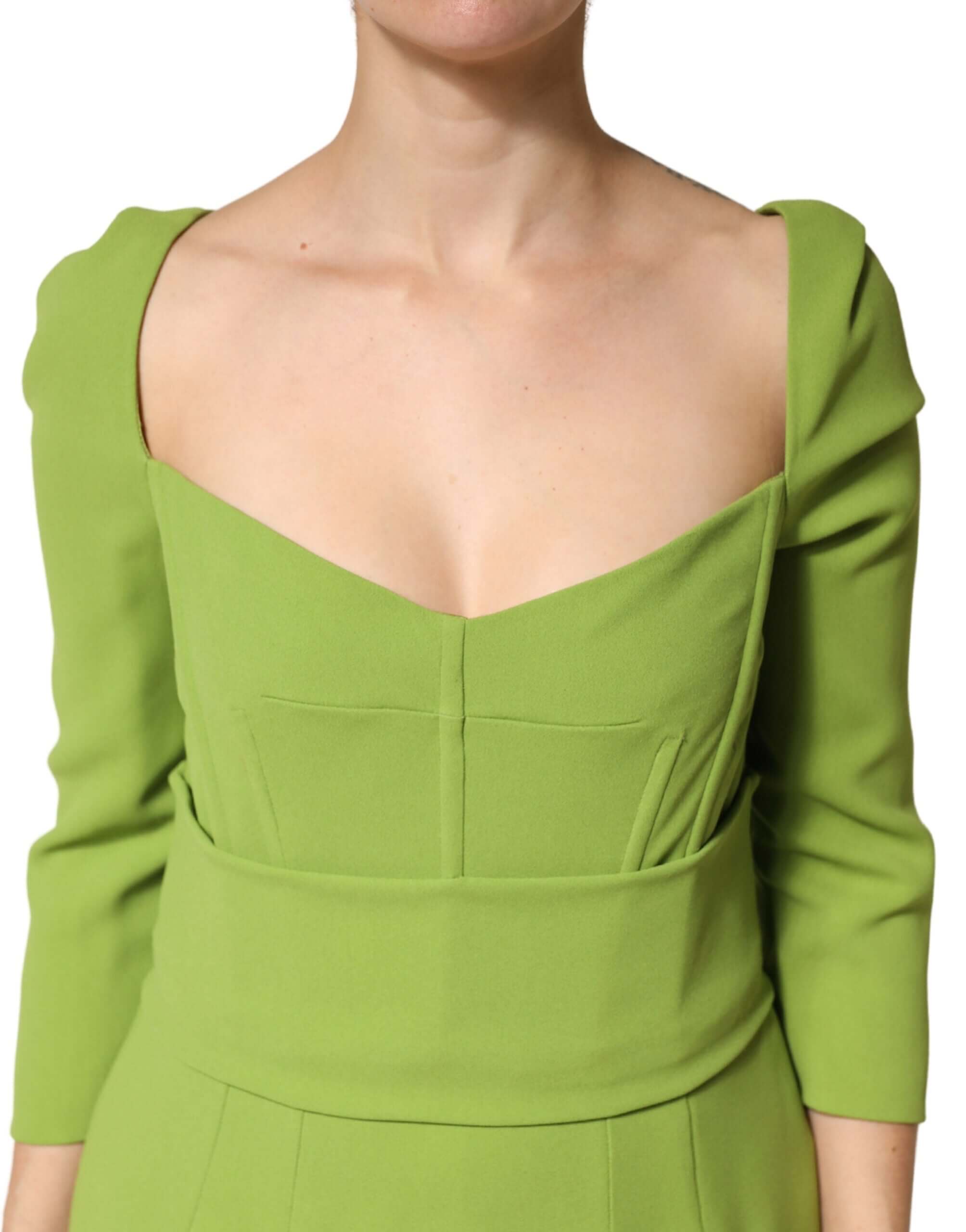 Gorgeous brand new with tags, 100% Authentic Dolce & Gabbana midi dress. This elegant piece features a structured sweetheart neckline with a fitted bodice that beautifully enhances the silhouette. Designed in a refined green tone, it is finished with three-quarter sleeves and a sleek midi-length skirt, offering timeless sophistication and Italian craftsmanship—perfect for formal occasions, events, or elevated daywear.