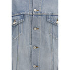 The regular-fit denim Jacket by Balenciaga reimagines classic workwear with a bold and contemporary attitude. The cotton construction shapes a regular silhouette with a flat collar and front button fastening, while chest pockets and slash pockets ensure functional balance. Balenciaga-engraved denim buttons and adjustable waist tabs add character and versatility, finished with the masking tape motif on the back as a distinctive graphic signature.