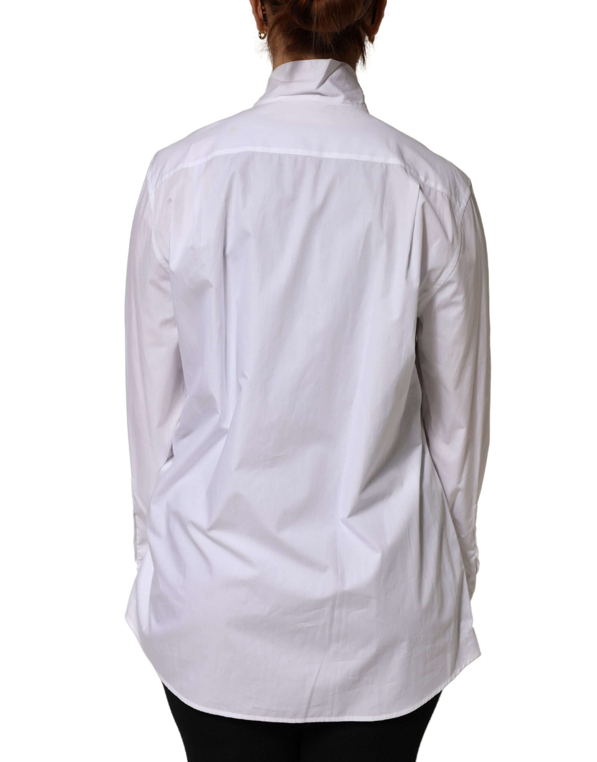 Gorgeous brand new with tags, 100% Authentic Dolce & Gabbana cotton collared long sleeves shirt.This elegant white shirt features a refined bow-tie neckline that adds timeless sophistication and feminine charm. Crafted from premium cotton, it offers a crisp, structured silhouette ideal for formal wear, office styling, or elevated everyday looks. A true expression of Dolce & Gabbana’s Italian luxury and craftsmanship.