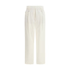 The cotton Pants by Brunello Cucinelli reinterpret essential tailoring with quiet refinement. Crafted in a classic five-pocket design, they feature an elasticated waistband with belt loops that balances structure and comfort. Two front pleats add subtle volume, while the high-rise waist and regular fit create a clean, elongated silhouette. Finished with a cuffed hem and a monochrome palette, they embody the brand’s understated elegance and versatile sophistication.